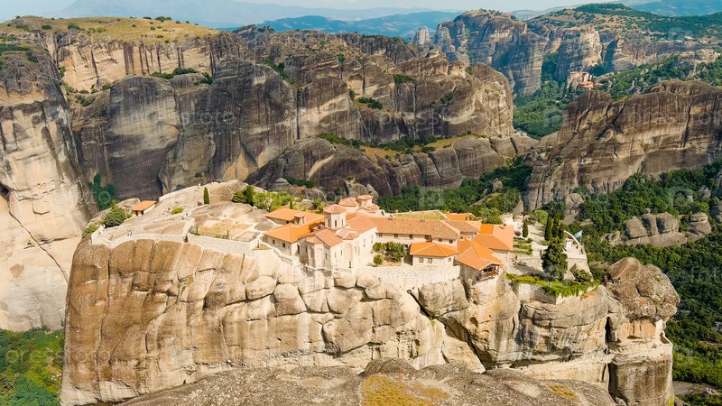 Метеора, Калабака, Греция. монастырь святого Стефана. метеоры - это скалы высотой до 600 метров. ЮНЕСКО перечисляет 6 активных греческих православных монастырей Aerial View