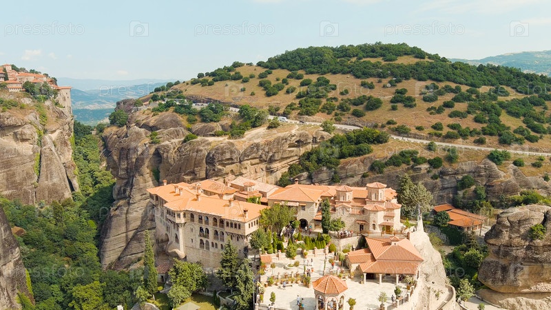 Метеоры - это скалы высотой до 600 метров. ЮНЕСКО перечисляет 6 активных греческих православных монастырей Aerial View