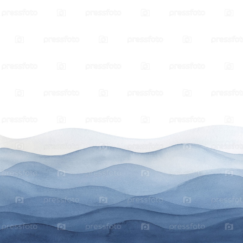 акварель серо-синих волн. абстрактное море. акварельная иллюстрация, выделенная на белом фоне