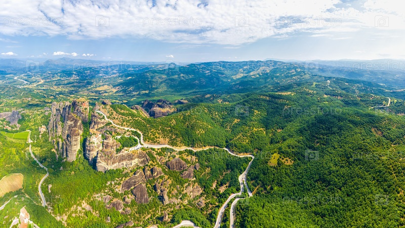 Панорама высоких скал и гор с монастырями