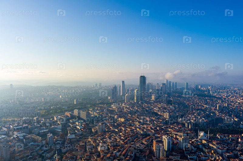 Стамбул, Турция.Панорама города сегодня утром.Небоскребы и жилые районы.Шоссе.Вид с воздуха
