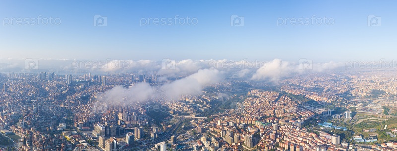 Стамбул, Турция.Панорама города сегодня утром.Небоскребы и жилые районы.Шоссе.Вид с воздуха