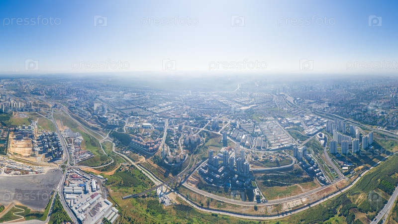 Стамбул, Турция.Панорама города сегодня утром.Небоскребы и жилые районы.Шоссе.Вид с воздуха