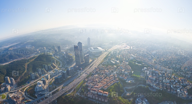 Стамбул, Турция.Панорама города сегодня утром.Небоскребы и жилые районы.Шоссе.Вид с воздуха