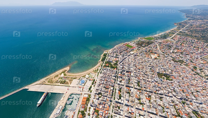 Александруполис, Греция Панорама города и порта Летний день Вид с воздуха