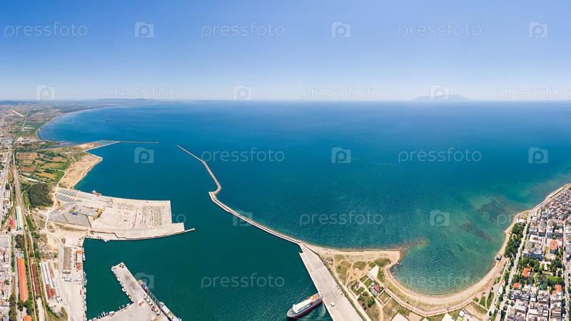 Александруполис, Греция. Панорама порта. Летний день. Вид с воздуха