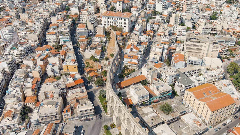 Кавала, Греция. Акведук. Исторический центр города. Лето, вид с воздуха