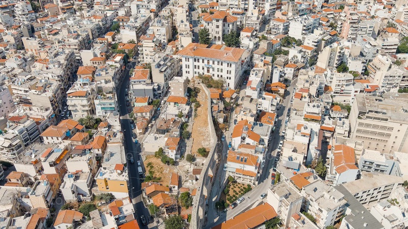 Кавала, Греция. Акведук. Исторический центр города. Лето, вид с воздуха