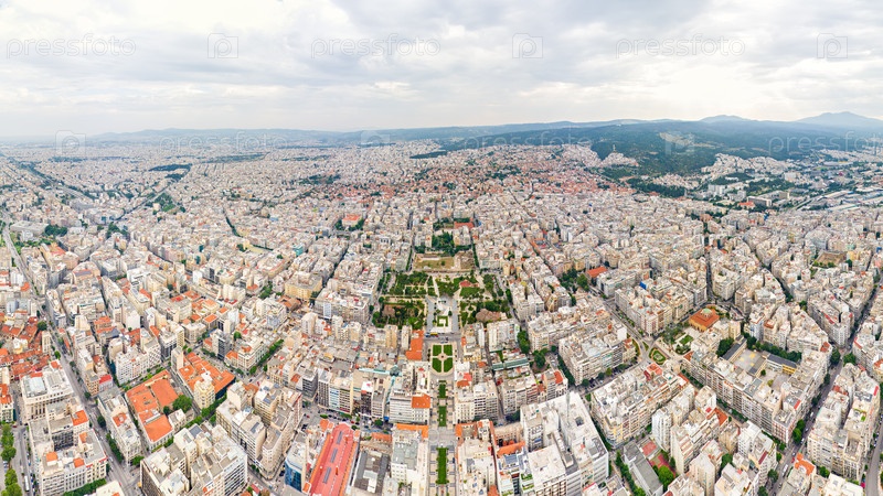 Салоники, Греция Панорама центральной части города Облачная погода Вид с воздуха
