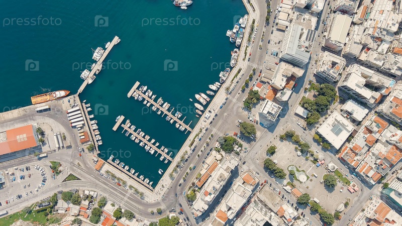 Кавала, Греция Исторический центр города Лето, вид с воздуха