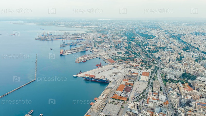 Салоники, Греция Панорама центральной части города Лето, вид с воздуха
