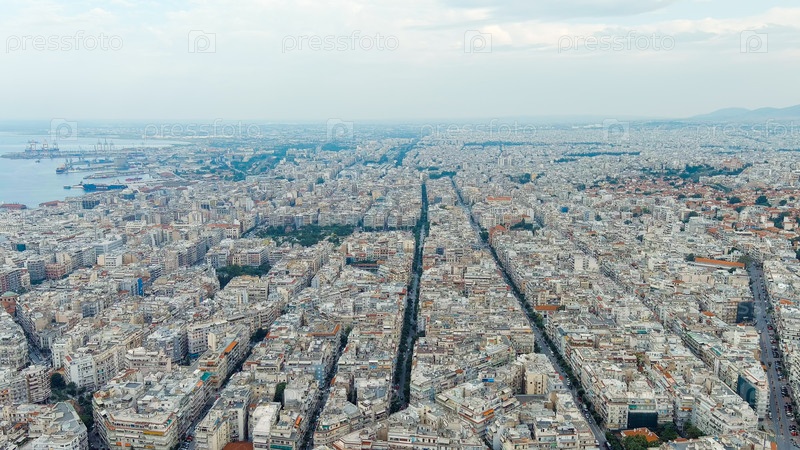 Салоники, Греция Панорама центральной части города Лето, вид с воздуха