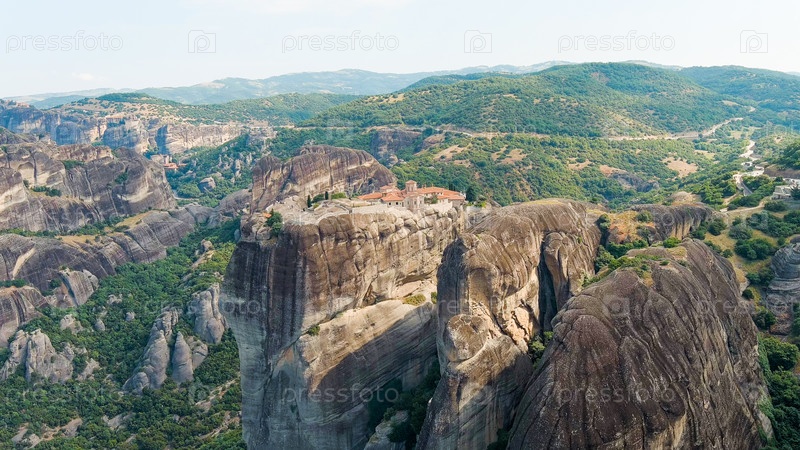 Метеора, Калабака, Греция. монастырь Святой Троицы в Метеоре. метеориты - это скалы высотой до 600 метров. ЮНЕСКО перечисляет 6 активных греческих православных монастырей Aerial View