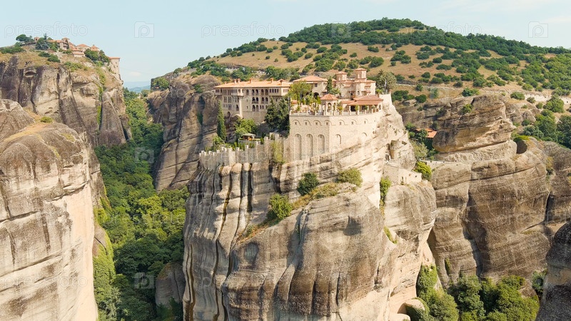 Метеоры - это скалы высотой до 600 метров. ЮНЕСКО перечисляет 6 активных греческих православных монастырей Aerial View