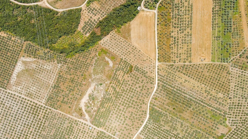 Ламия, Фтиотис, Греция. оливковые деревья, лето, взгляд с воздуха