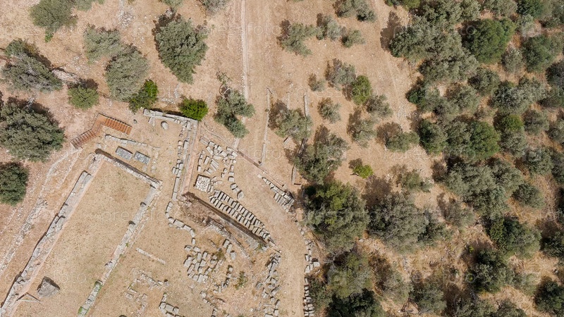 Делфи, Греция.Руины древнего города Дельфы.Солнечная погода, лето, вид с воздуха