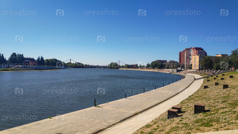 Пенза, Россия Развитое общественное пространство Набережная реки Сура Летнее утро
