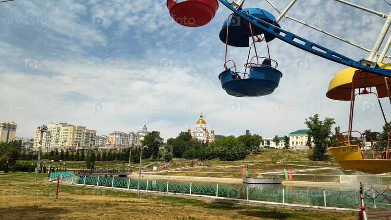 Саранск, Россия. собор святого праведного воина Федора Ушакова. ферикс тяга колеса. парк культуры и отдыха А.С. Пушкина. Республика Мордовия