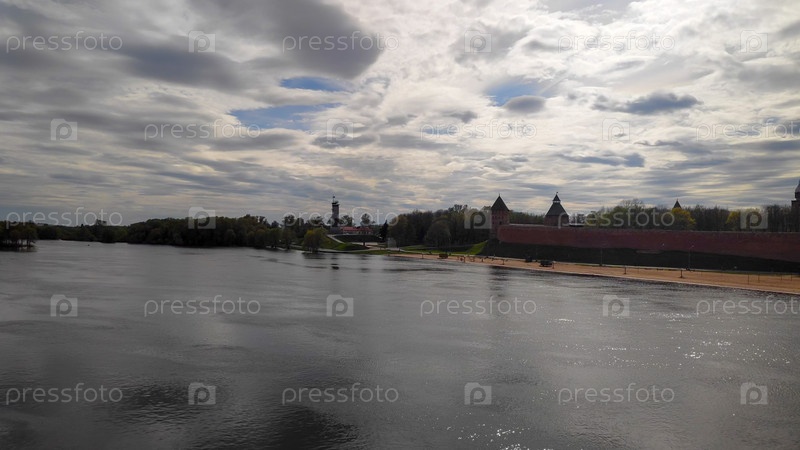 Новгород, Россия.Стены Кремля.Большая река Волк