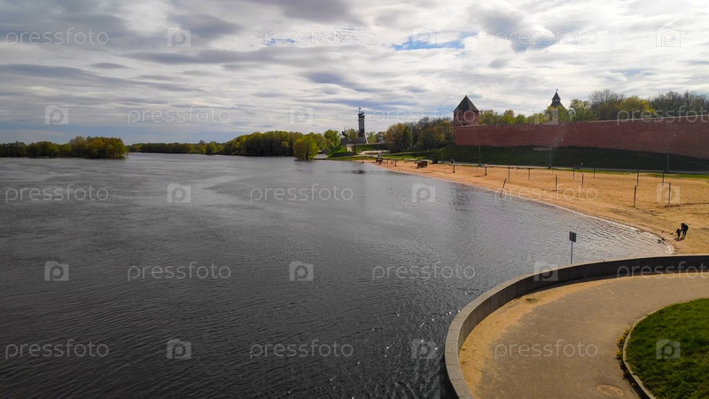 Новгород, Россия.Стены Кремля.Большая река Волк