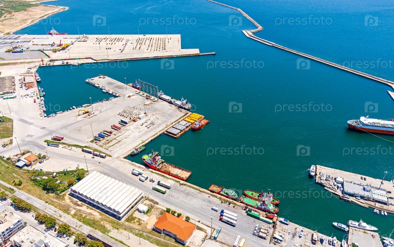 Александруполис, Греция. Панорама порта. Летний день. Вид с воздуха