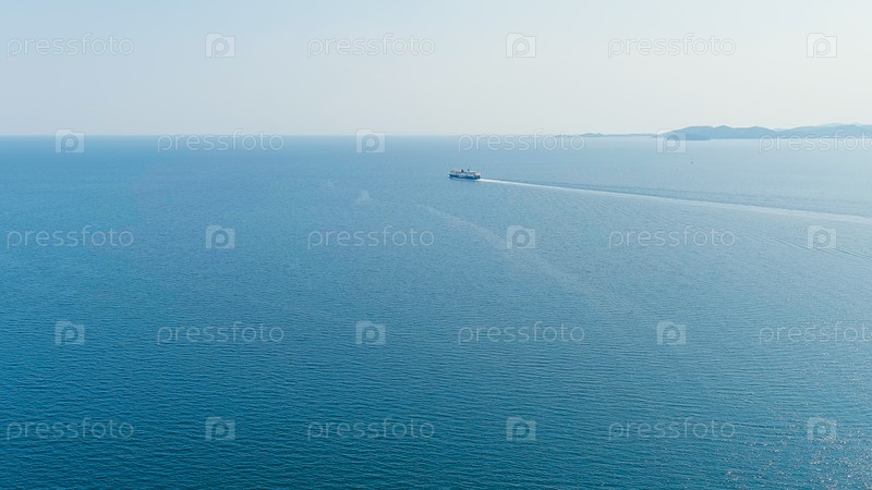 Кавала, Греция Паром уходит из порта Эгейское море Лето, вид с воздуха