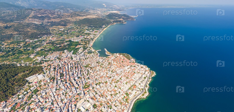 Кавала, Греция Панорамный вид на город и залив Горы и море Вид с воздуха