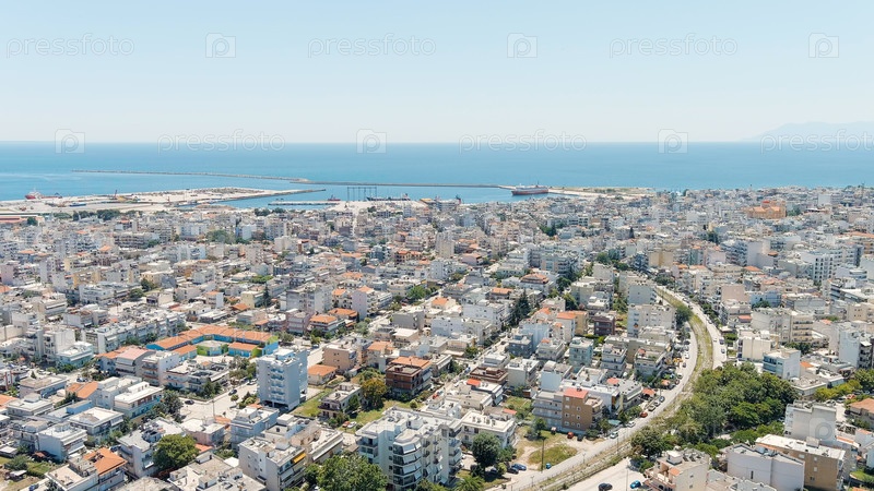 Панорама центральной части города летом Побережье Фракийского моря, вид с воздуха