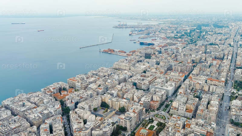 Салоники, Греция Панорама центральной части города Лето, вид с воздуха