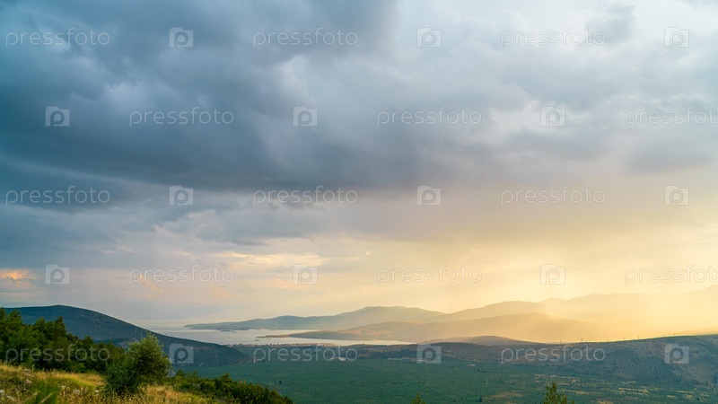 Дельфы, Греция.Облака дождя над долиной.Северное побережье Коринфского залива, бухта Итеи