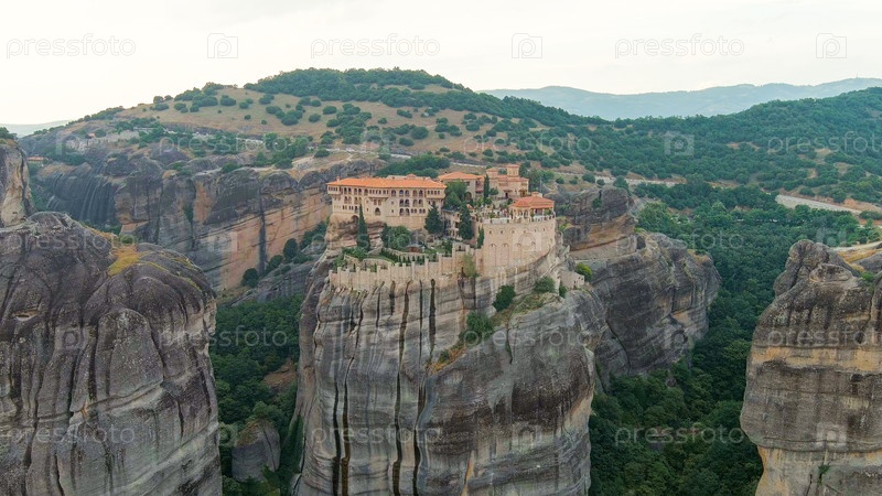 Метеоры - это скалы высотой до 600 метров. ЮНЕСКО перечисляет 6 активных греческих православных монастырей Aerial View