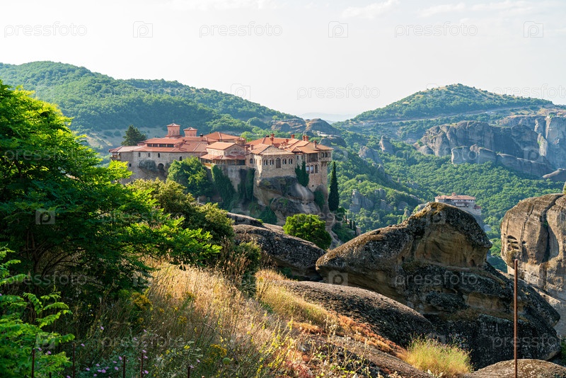 Метеора, Каламбака, Греция. Монастырь Святого Варлаама. Метеоры - это скалы высотой до 600 метров. ЮНЕСКО перечисляет 6 активных греческих православных монастырей