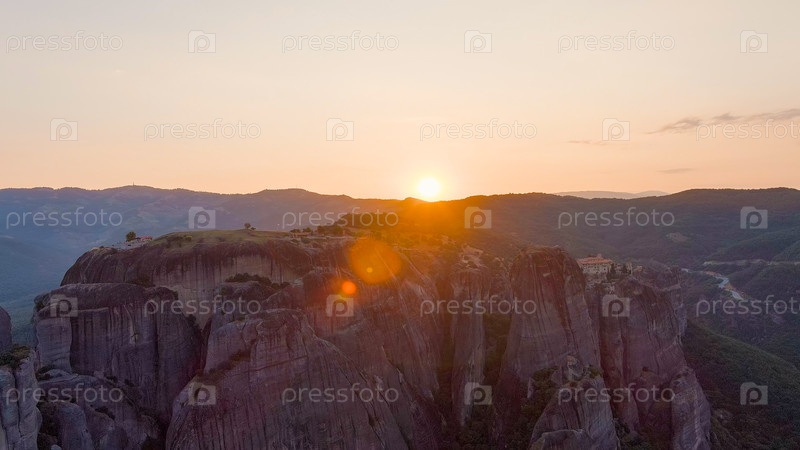 Метеора, Калабака, Греция. монастырь Преображения Спасителя. метеоры - это скалы высотой до 600 метров. ЮНЕСКО перечисляет 6 активных греческих православных монастырей Посмотреть с воздуха