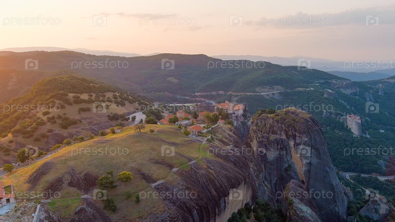 Метеора, Калабака, Греция. монастырь Преображения Спасителя. метеоры - это скалы высотой до 600 метров. ЮНЕСКО перечисляет 6 активных греческих православных монастырей Посмотреть с воздуха