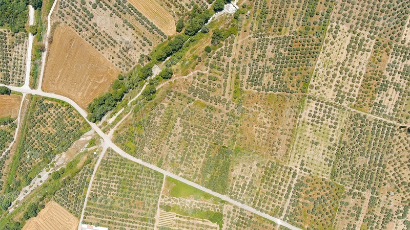 Ламия, Фтиотис, Греция. оливковые деревья, лето, взгляд с воздуха