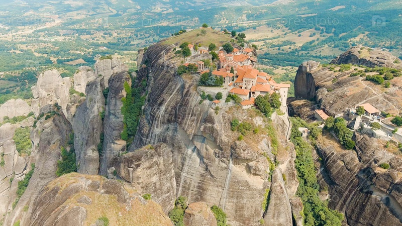 Метеора, Калабака, Греция. монастырь Преображения Спасителя. метеоры - это скалы высотой до 600 метров. ЮНЕСКО перечисляет 6 активных греческих православных монастырей Посмотреть с воздуха