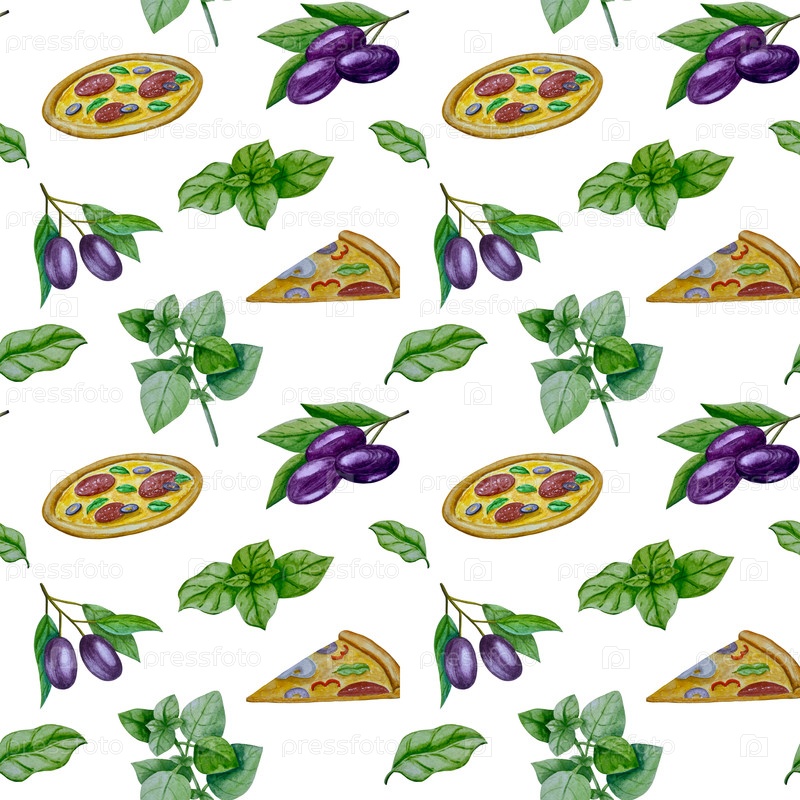 Акварельная иллюстрация пиццы и набор иллюстраций ингредиентов.Быстрое итальянское блюдо изолировано на белом фоне