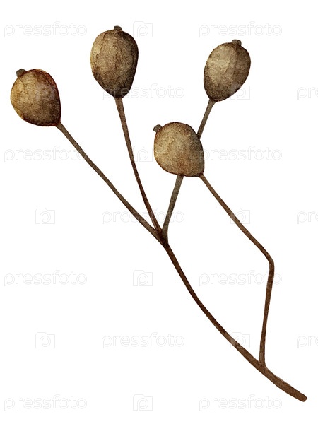 Ручно нарисованный акварельный осенний набор желудей, осенних листьев, грибов, ягод, изолированных на белом фоне. Идеально подходит для создания карт и дизайна. Иллюстрации Дня благодарения