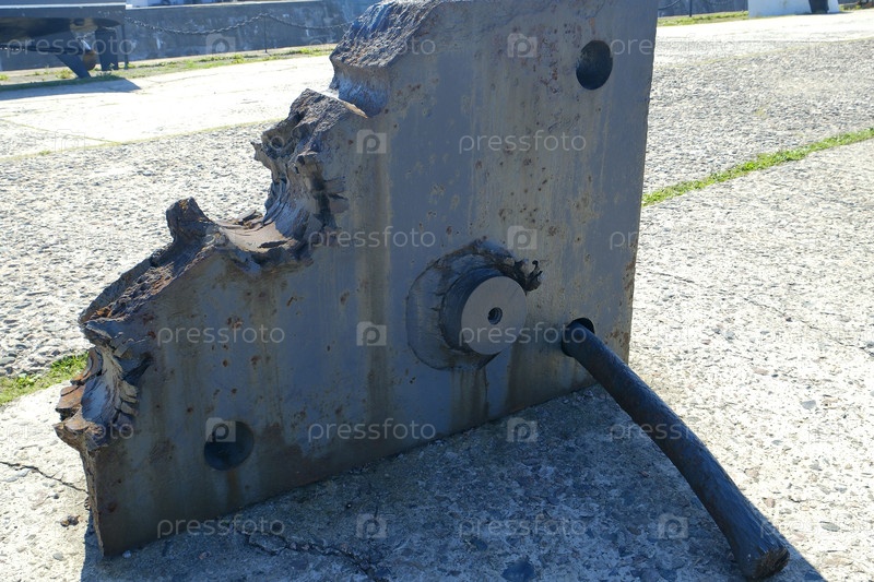 Фрагмент стального корпуса, пробитого снарядом внутри которого находился снаряд.Россия, Кронштадт, 7 августа 2025