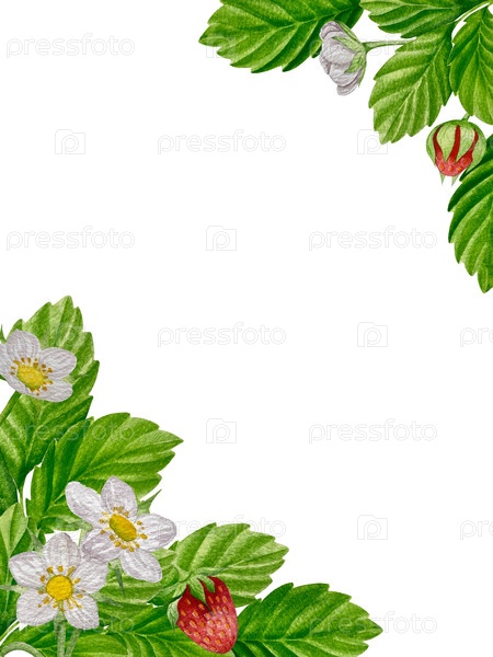 Изолированные клубники, красные ягоды и листья на белом фоне. Рукописная реалистичная иллюстрация для чайной этикетки, варенья или натуральной косметики