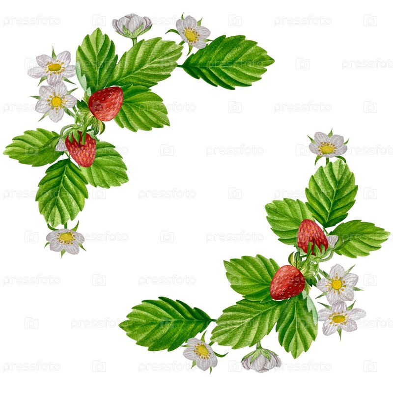 Изолированные клубники, красные ягоды и листья на белом фоне. Рукописная реалистичная иллюстрация для чайной этикетки, варенья или натуральной косметики