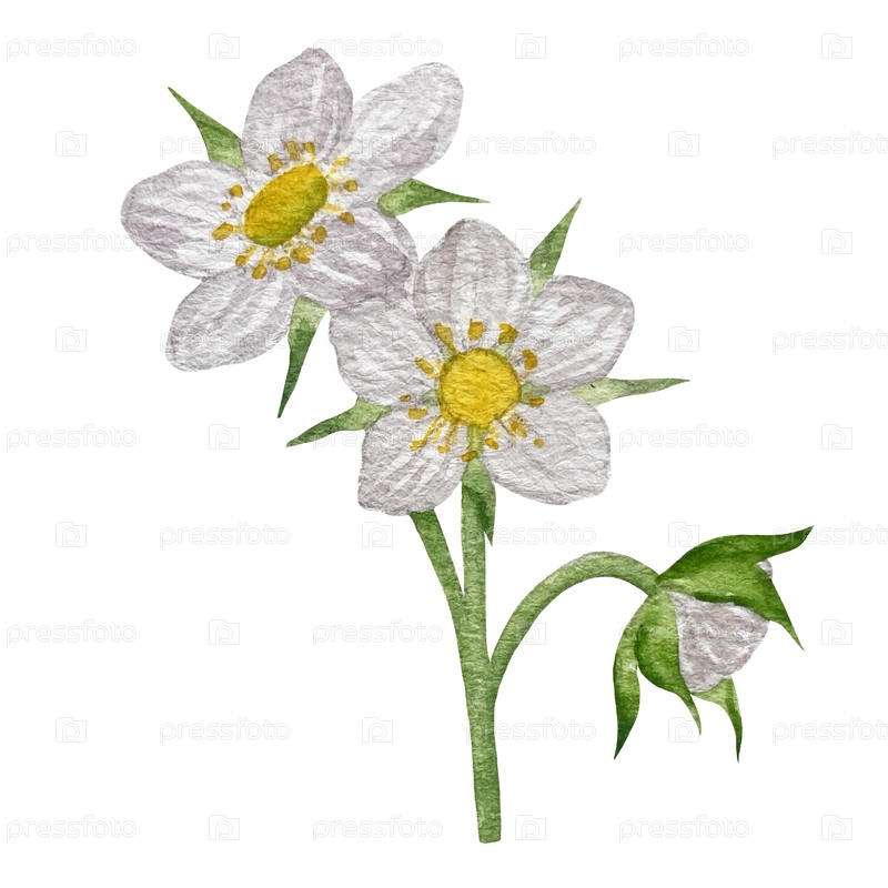 Изолированные клубники, красные ягоды и листья на белом фоне. Рукописная реалистичная иллюстрация для чайной этикетки, варенья или натуральной косметики