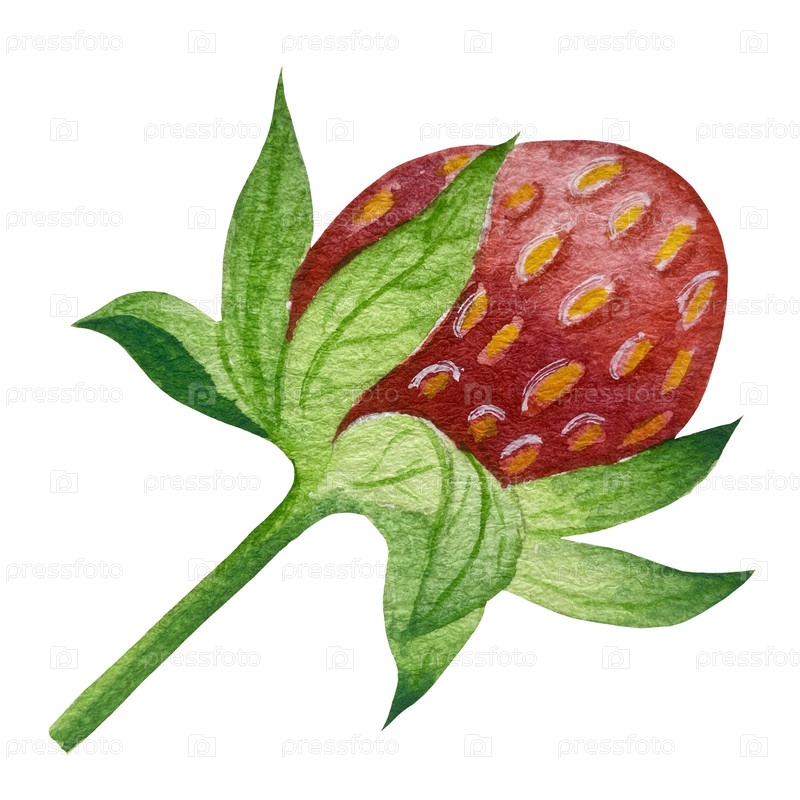 Изолированные клубники, красные ягоды и листья на белом фоне. Рукописная реалистичная иллюстрация для чайной этикетки, варенья или натуральной косметики