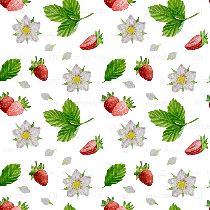 Изолированные клубники, красные ягоды и листья на белом фоне. Рукописная реалистичная иллюстрация для чайной этикетки, варенья или натуральной косметики