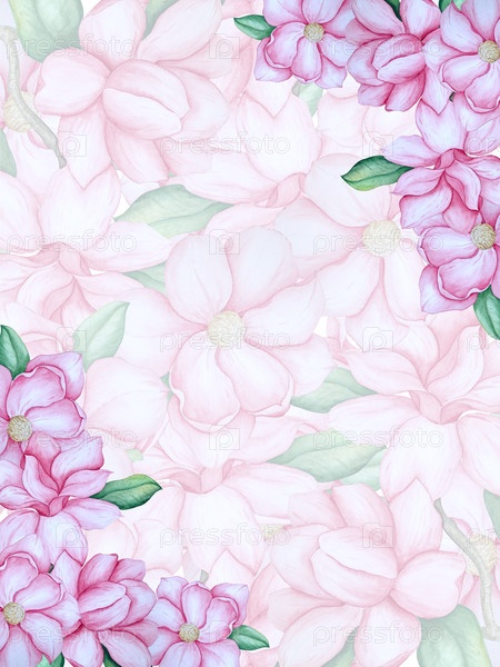 Магнолия цветет с акварелью. украшения для свадебных приглашений