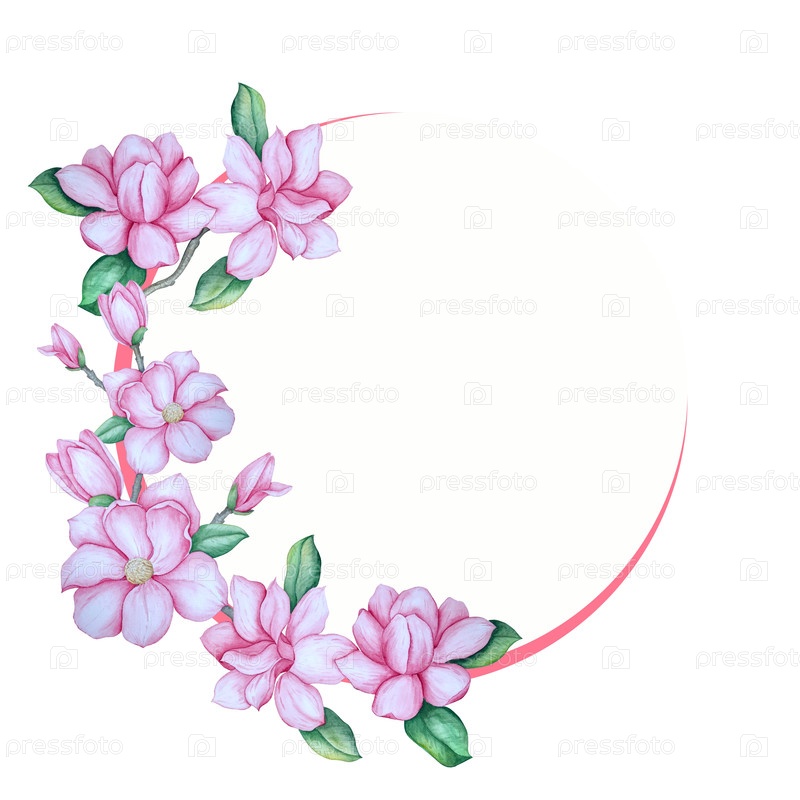 Магнолия цветет с акварелью. украшения для свадебных приглашений