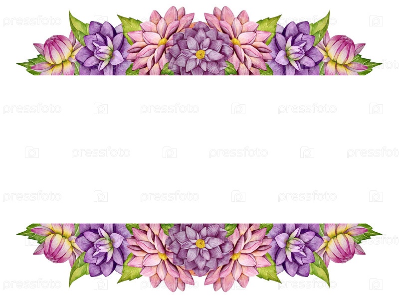Акварельное украшение с цветами и листьями далии