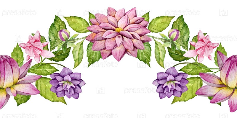 Акварельное украшение с цветами и листьями далии