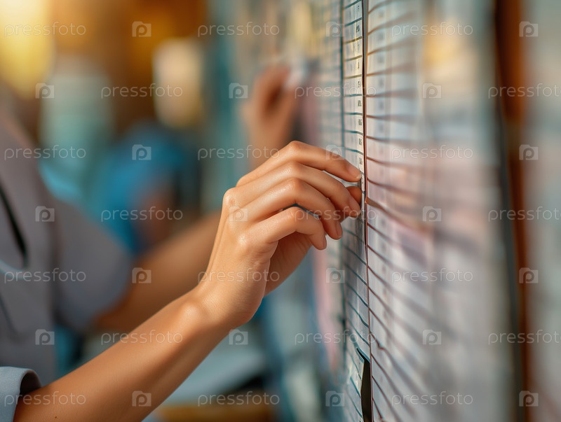 Женская рука выбирает линию по расписанию или графику