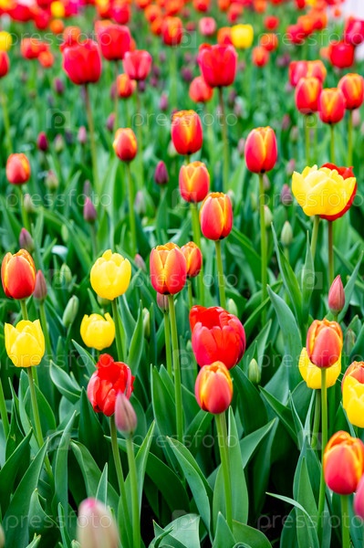 Красно-желтые тюльпаны в цвете